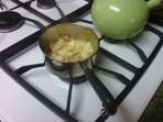 I chopped an apple into small pieces, skin and all, and put it in a sauce pan with 1 tablespoon of clarified butter*, a 1/4 teaspoon of ground cinnamon, a dash of allspice and cloves. I added a small amount of water. About 1/8 cup. Simmered until soft (about 20 minutes) and mash with a fork. I added a little too much water and it came out soupier than I would have liked. But it was tasty and a great compliment to my meal. (*Those in Phase 2 without oil omit the clarified butter.)